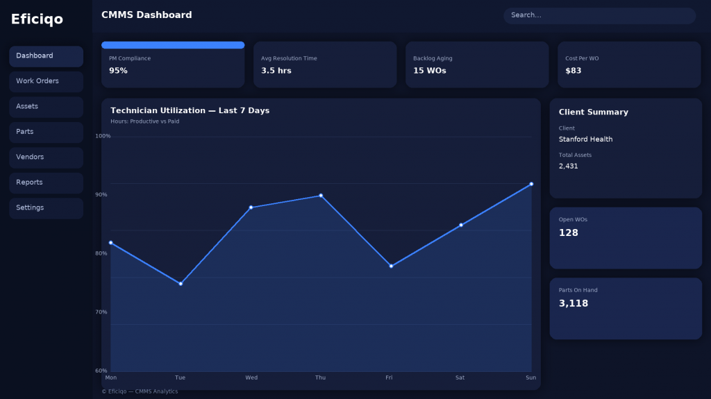 Eficiqo delivers custom CMMS solutions to drive your business forward, from implementation to analytics.
